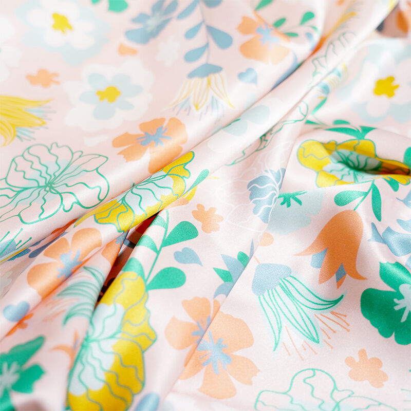 Vores fabrik kan skilte sig med en komplet silkeindustri-kæde, der starter med kvalitetskontrol af råmaterialer til mørkelsilke. Med brug af mere end et århundredes erfaring inden for silkeproduktion opnår vores silkeprodukter en perfekt kombination af glans, tykkelse, blødhed og holdbarhed. Vi anvender den højeste kvalitet (klasse 6A) med langfibrede mørkelsilke, med stoftykkelse fra 16 til 30 Momme. Alle produkter overholder OEKO-TEX®-standarden og farves med naturlige farvestoffer.