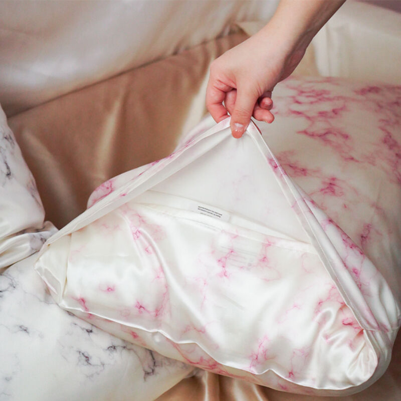 Fremstillet af højkvalitets silke (100 % 6A mulbærtræssilke som valgmulighed) – glat, gnidningsfri overflade reducerer furer i ansigtet, fine linjer og hårbrud.