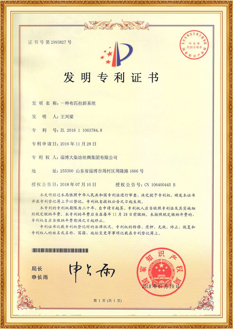 Zibo Daranfang Silk Group Co., Ltd. er et professionelt virksomhed, der beskæftiger sig med fremstilling og farvning af silkebeklædning. Det er den eneste silkeproducent i Kina, der råder over en fuld industrielle værdikæde som omfatter silkeopspinding, vævning, trykning og farvning, farvning af cheesesøm, design samt fremstilling af sengetøj og tøj.