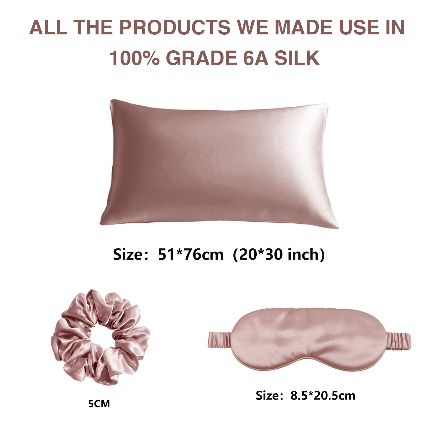 Taie d'oreiller : 51*66 cm, 51*76 cm, 51*91 cm, Taille personnalisée Scrunchies : 1 cm, 2,5 cm, 3,5 cm, 5 cm, Taille personnalisée Masque pour les yeux : 20*9 cm